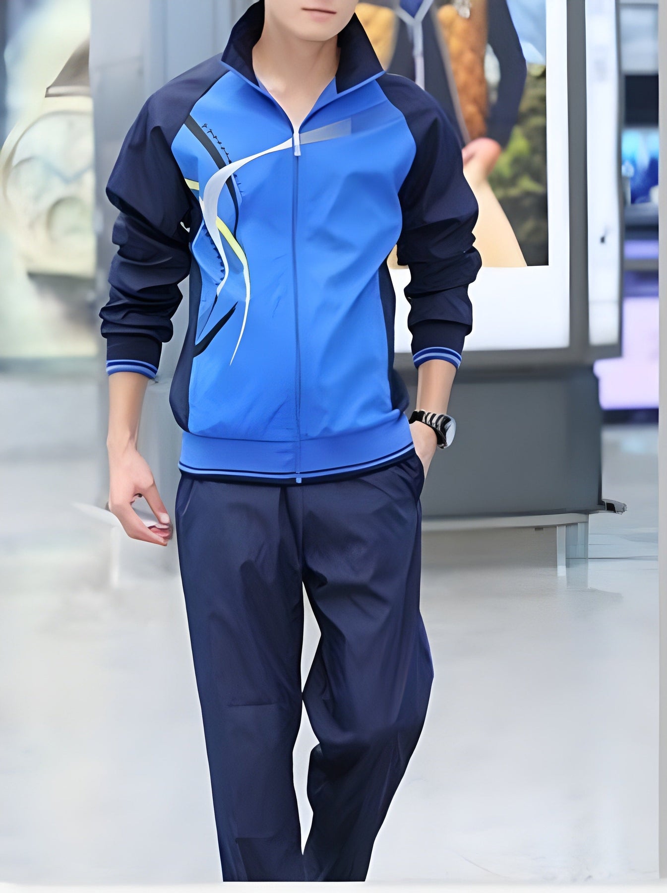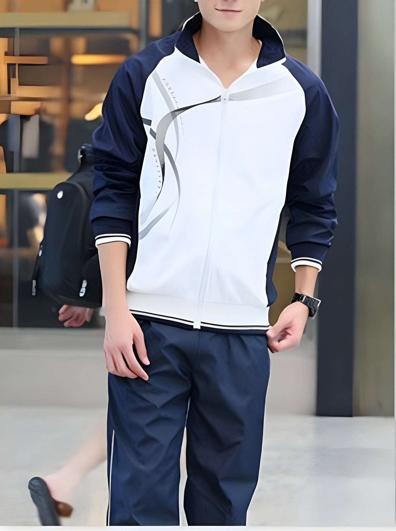 Ce survêtement décontracté pour homme comprend une veste zippée et un pantalon long assortis, adaptés aux sports légers ou à une tenue décontractée au quotidien. Cet ensemble deux pièces est conçu pour être porté au printemps et en automne. Il offre une grande liberté de mouvement pendant les activités. Le survêtement est idéal pour les sorties décontractées ou les entraînements sportifs. Son style général offre un look coordonné et simple pour un usage quotidien.